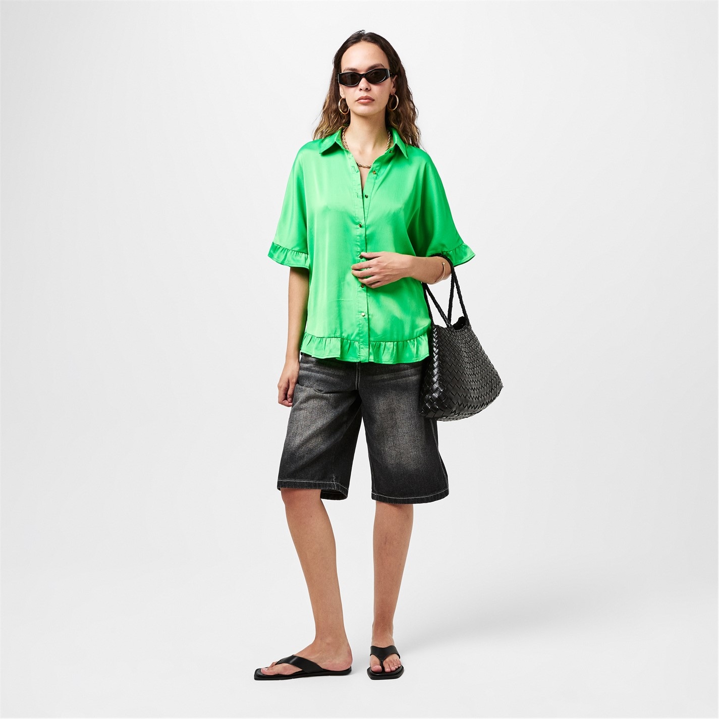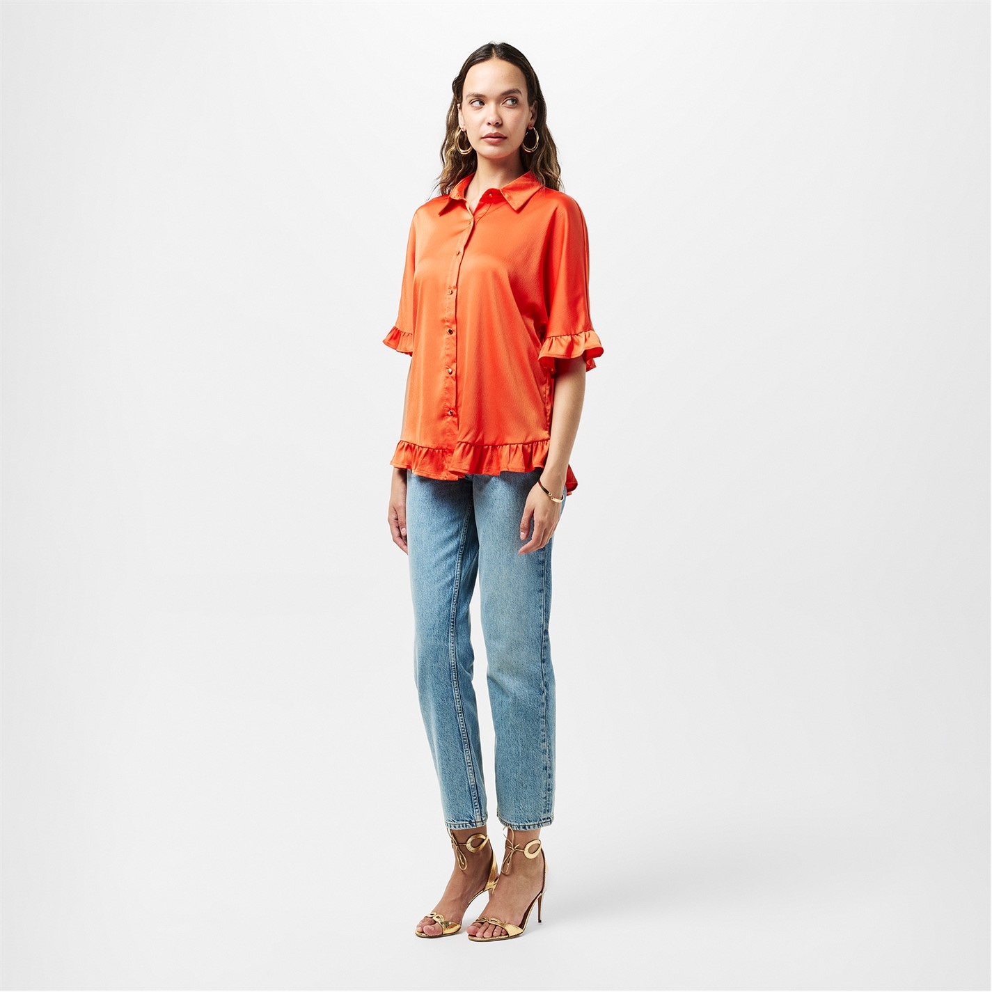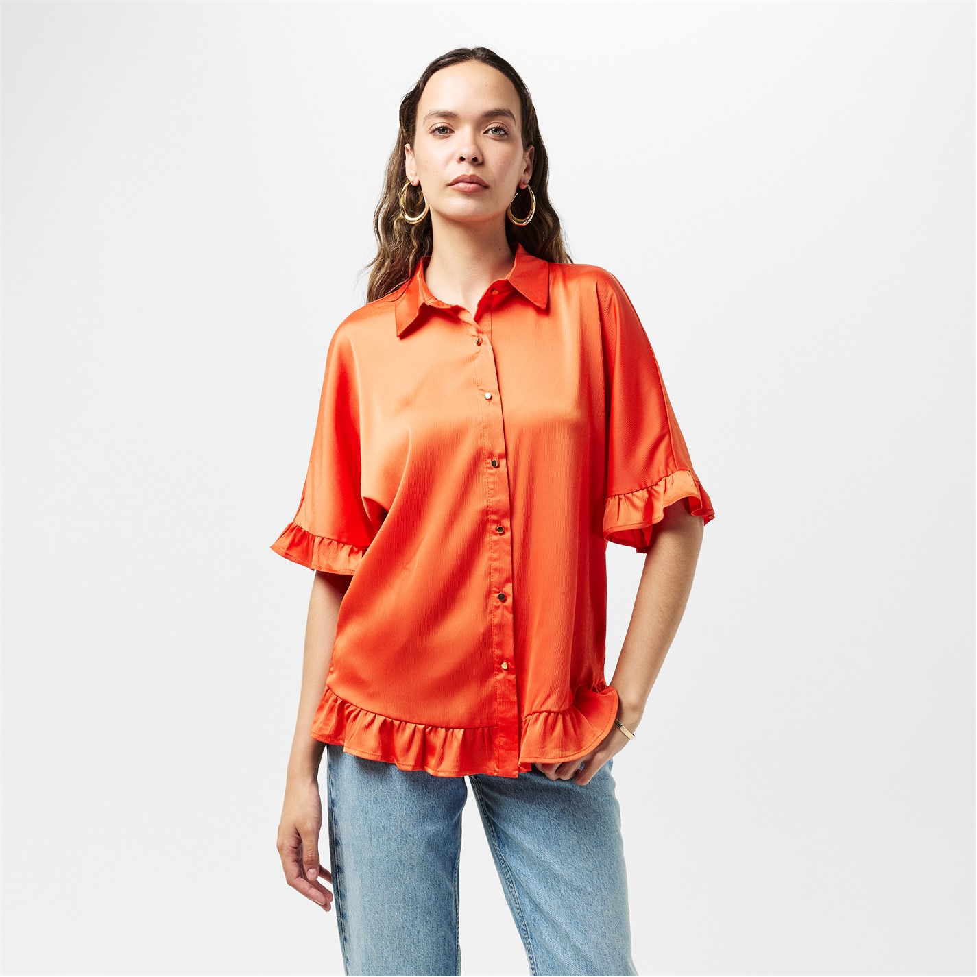 AX Paris Frill Detail Gold Button Front Shirt