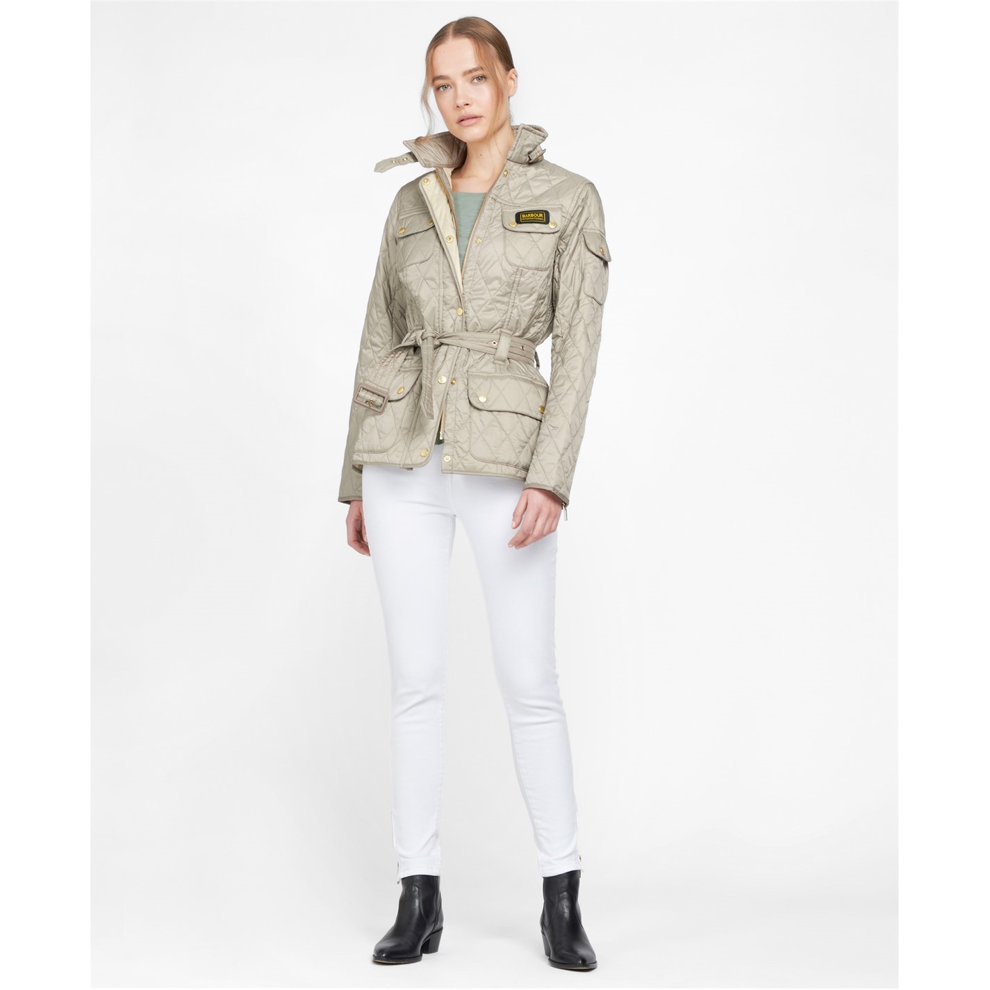Barbour International Women's Diamond Quilted Wind Resistant Long Sleeve Slim Fit Quilted Jacket
