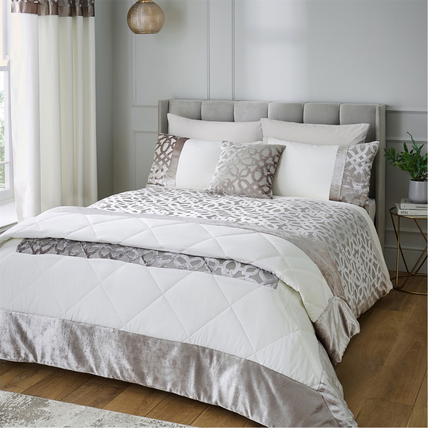 Catherine Lansfield Lattice Cut Velvet Quilted Bedspread