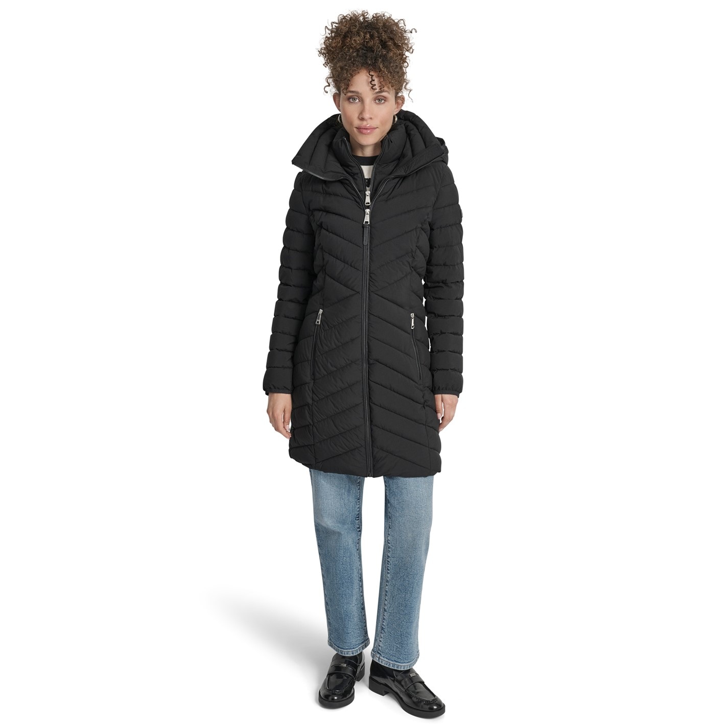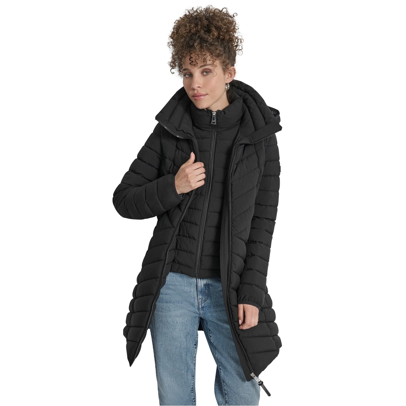 DKNY Women's Double-Zip Quilted Medium Puffer Jacket