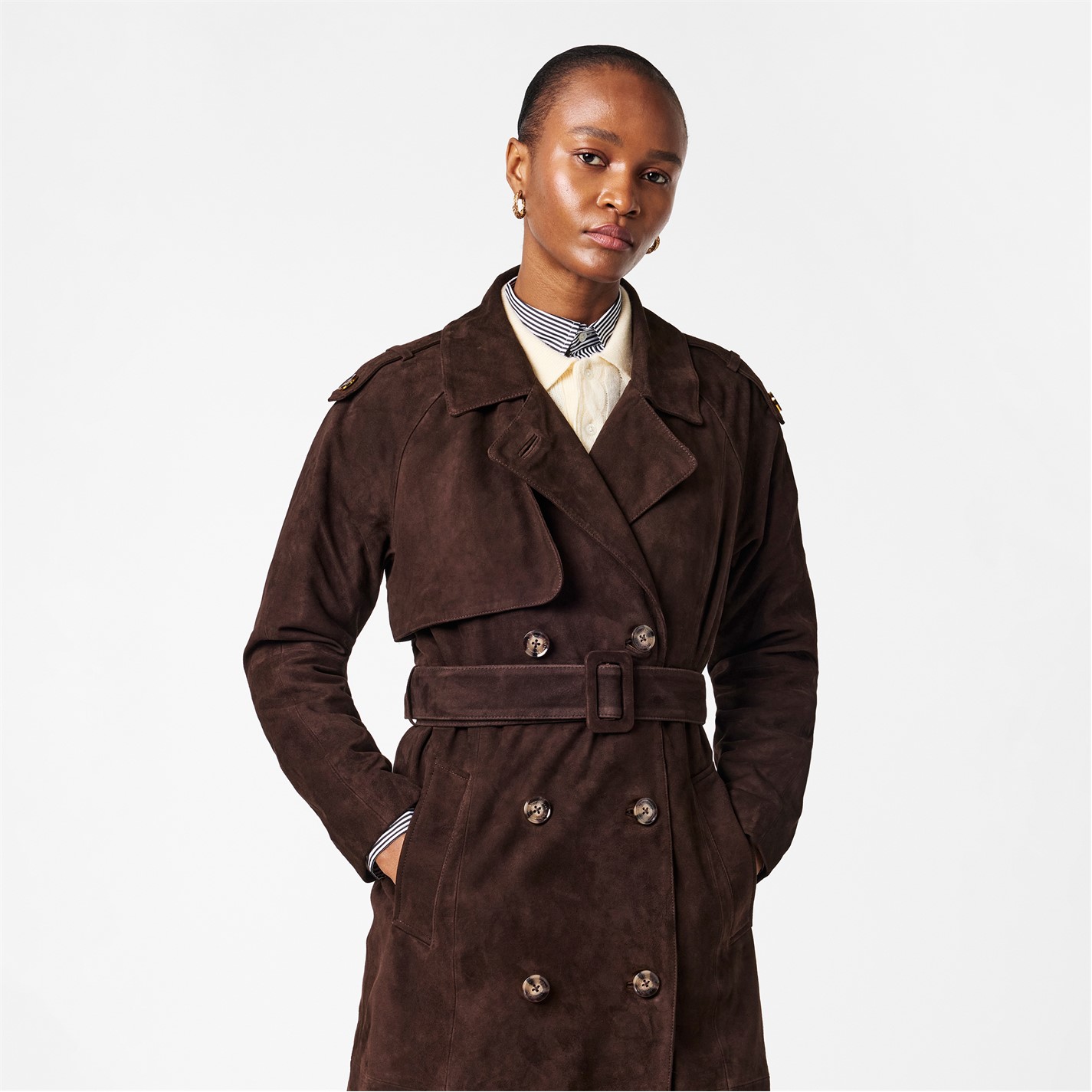 DONNA KARAN Women's Suede Trench Coat