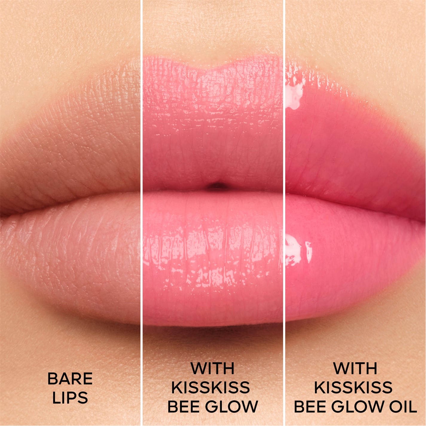 KissKiss Bee Glow Oil comes in 6 syrup shades which pair perfectly with the KissKiss Bee Glow tinted caring balm shades, including its 3 star hues: