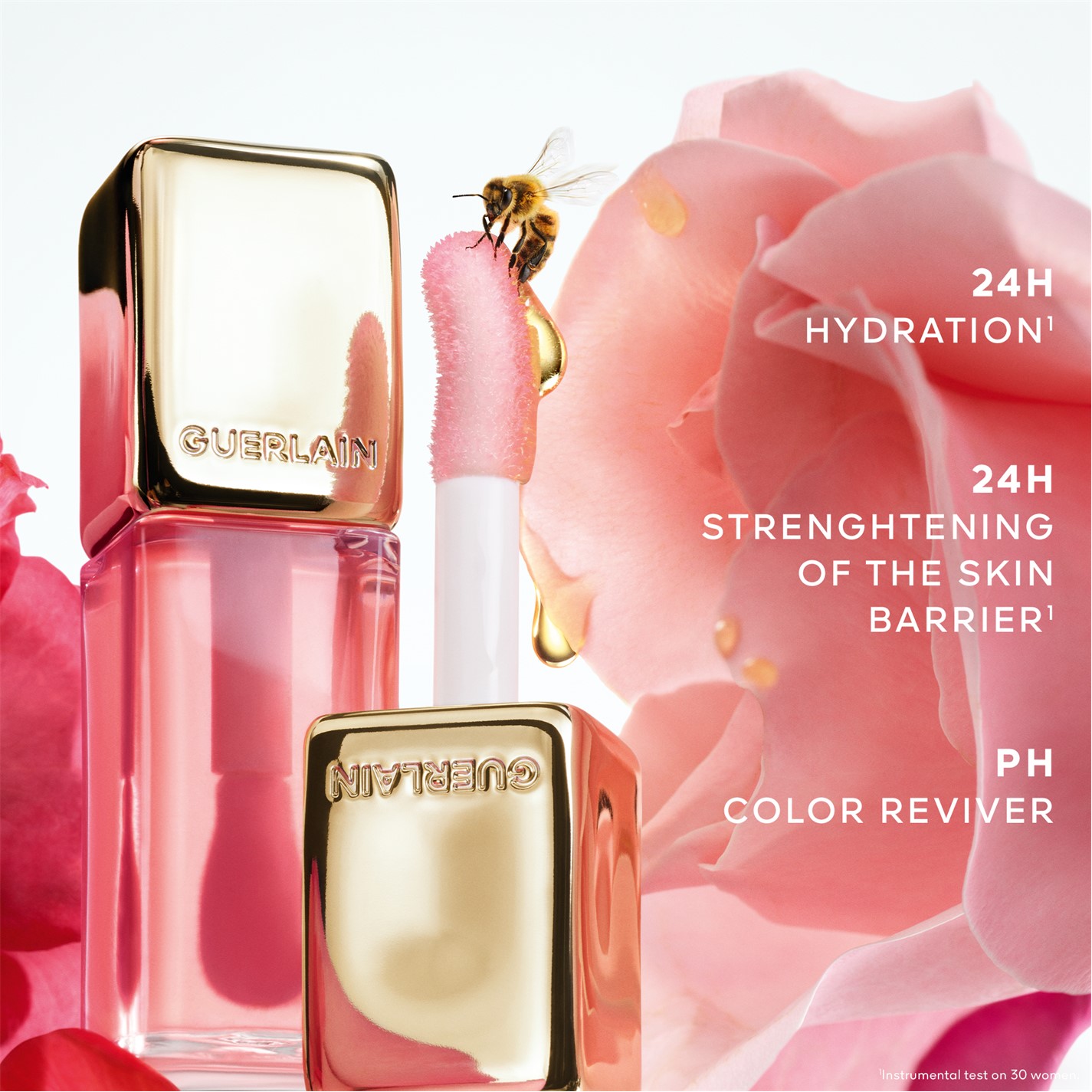 Guerlain presents KissKiss Bee Glow Oil, a honey-infused tinted lip oil formulated with 92% naturally-derived ingredients. Available in six syrup shades, it boosts lips’ natural colour with a touch of irresistible 3D shine, delivering 24 hours of care². Ultra-sensorial, the melt-in, coating skincare texture offers a cocooning sensation and ensures an instant volume effect and a completely addictive glassy shine, with no stickiness.