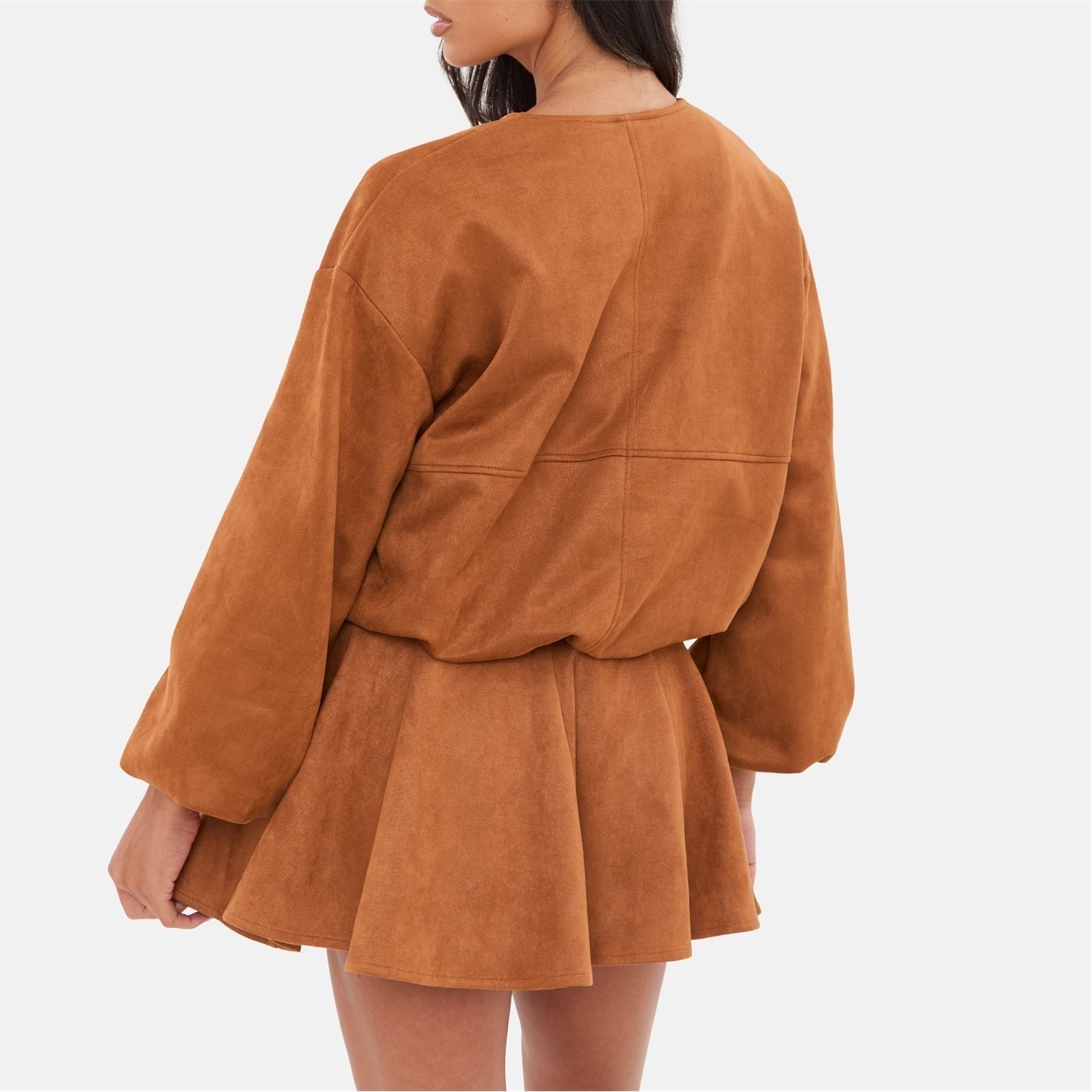I Saw It First Women's Faux Suede Bubble Hem Long Sleeve Faux Leather Jacket