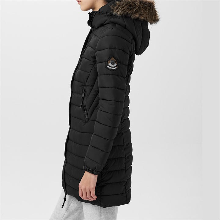 Superdry Women's Super Fuji Faux Fur Hood Storm Long Sleeve Short Puffer Jacket