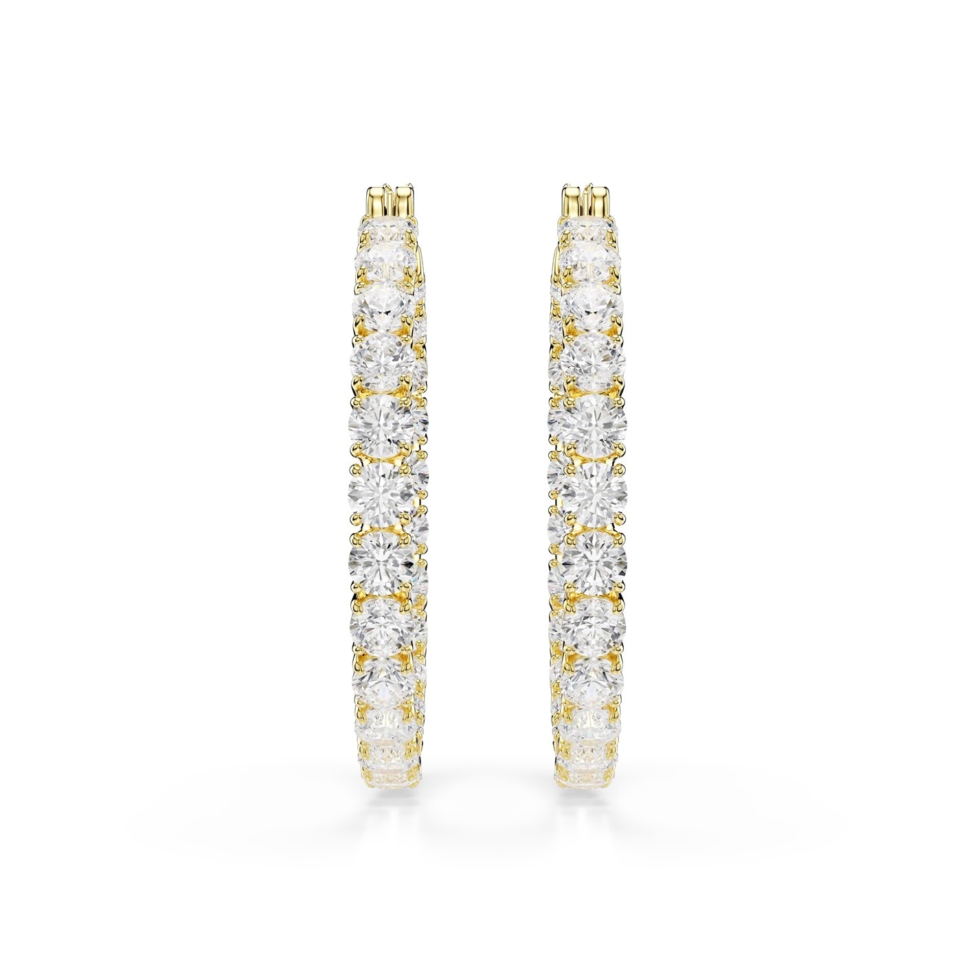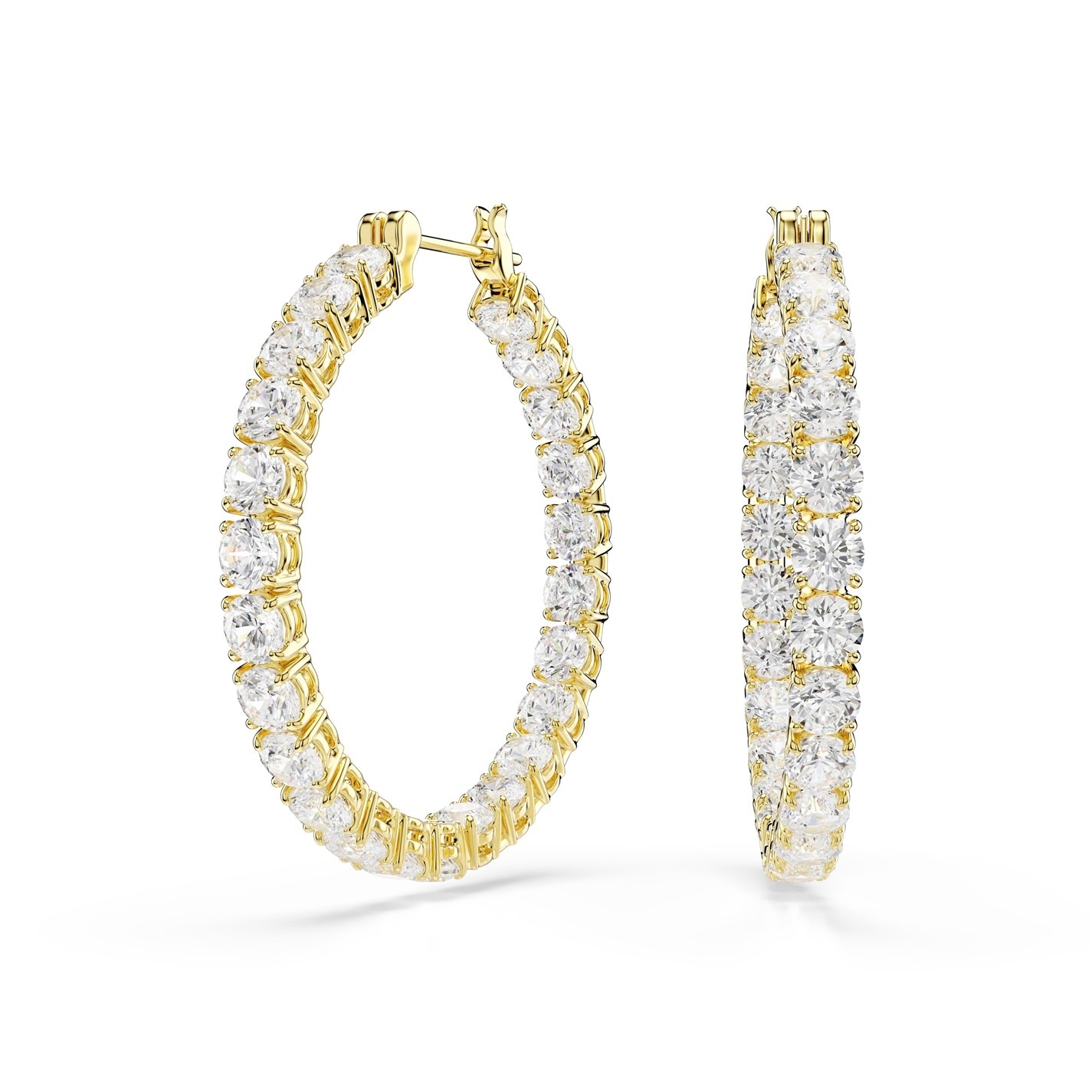 Swarovski Matrix hoop earrings, Round cut, Blue, Rhodium plated