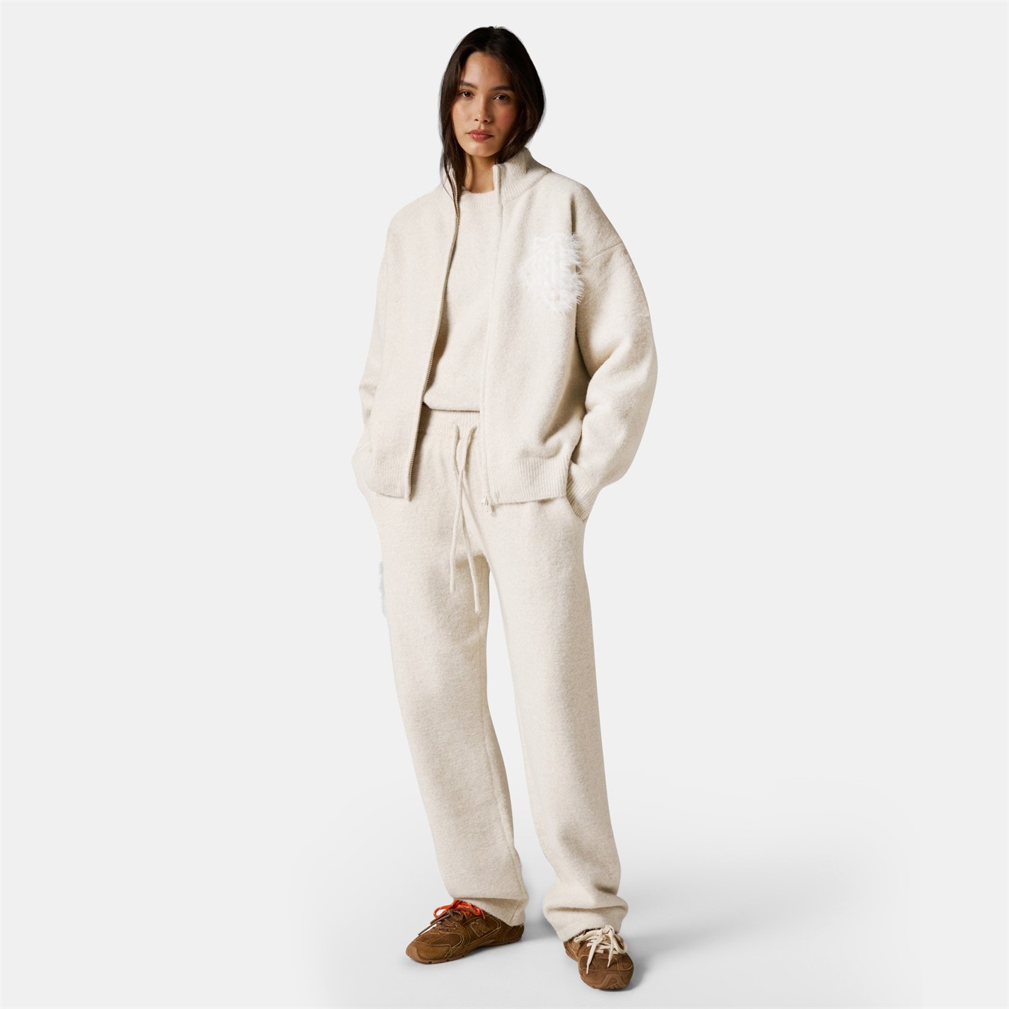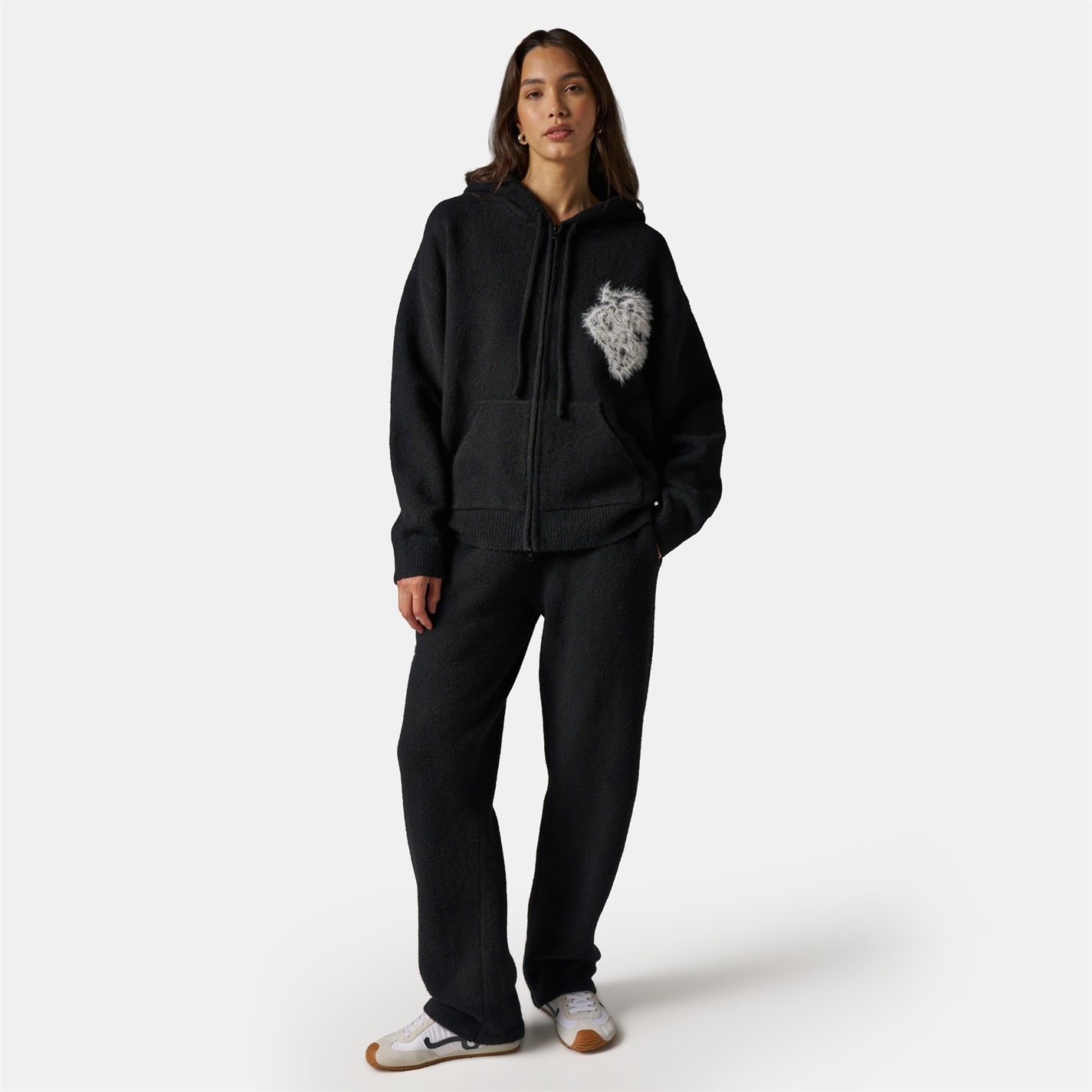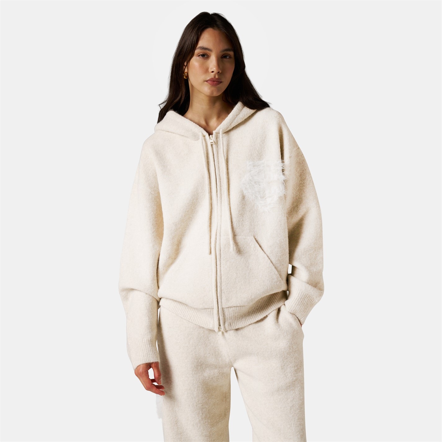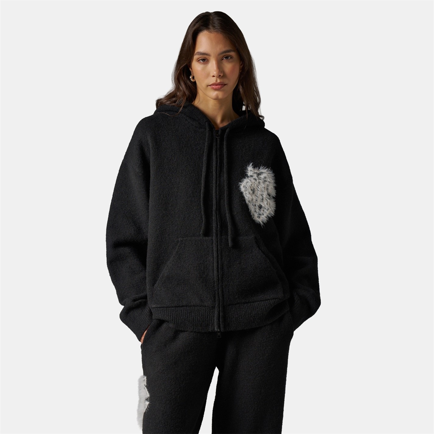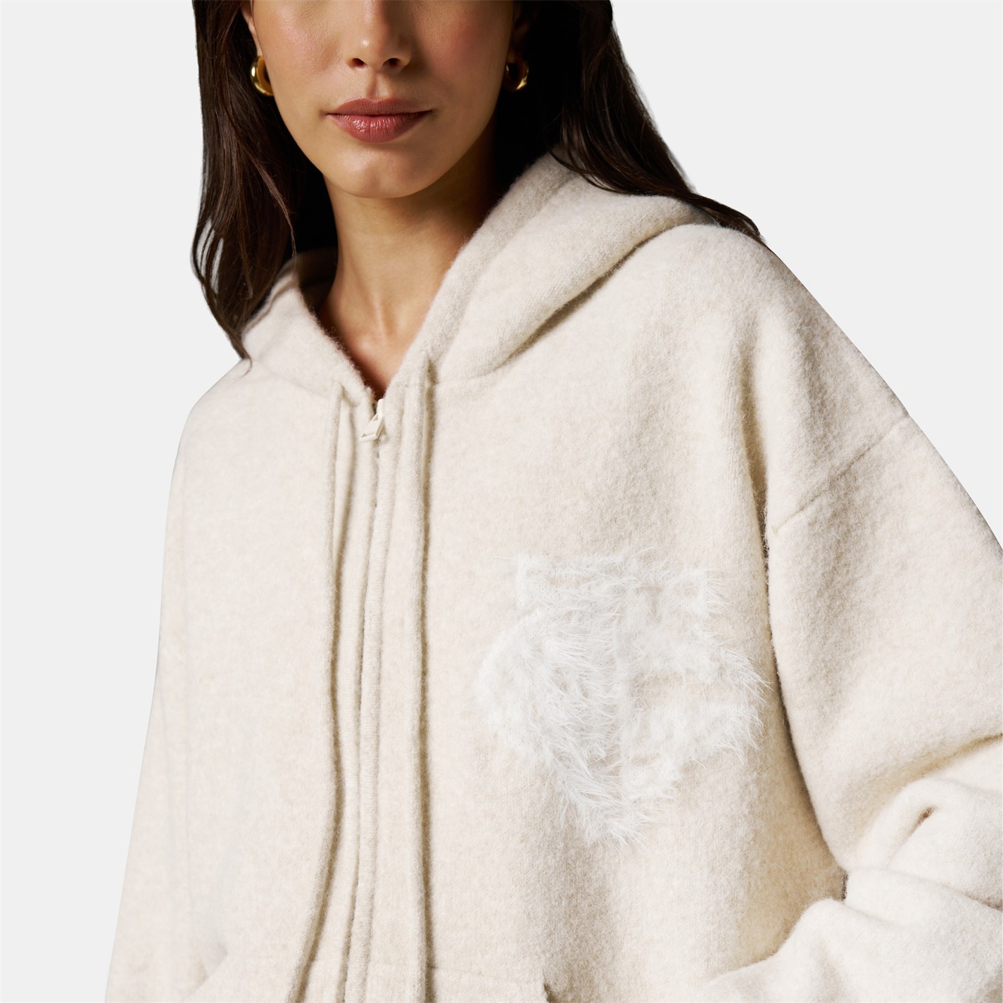 THE COUTURE CLUB Womens Fluffy Knit Zip Hoodie
