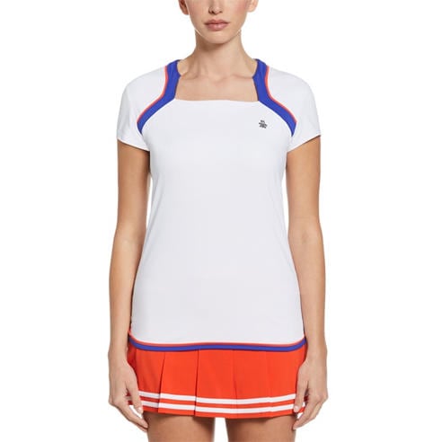 Our new season range of women’s tops and t-shirts will ensure you’re ready for your next match. Browse an assortment of styles including long and short-sleeved t-shirts in an array of colourways including staple black, grey and white as well as bold pops of colour. For chiller days when playing outside, browse a variety of track tops to create a stylish ensemble. Whether your a pro or just starting out, shop this season’s collection of women’s t-shirts and tops by brands like HEAD, Wilson and Dunlop.