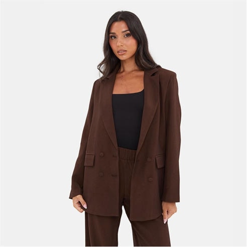 For sleek styling this season, shop our women's brown blazer collection. Discover brown suit jackets in block colouring and check print styles. Elevate this style staple with leather and brown tweed pieces for a sultry off-duty ensemble. Choose from trendy chocolate brown pieces with gold buttons to fuzzy wool mocha jackets. With luxury branding to complete the high-end look, pair your blazer with a turtleneck and jeans for a casual look or wear tailored brown jackets in the boardroon. This season, shop our ladies' brown blazer range.